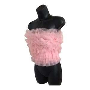 Pink chiffon mesh tulle strapless bustier style top size large brand new