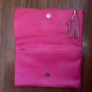 Hot pink clutch bag.