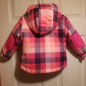 Pink, plaid coat with hood and zip out fleece liner. 18 mos
