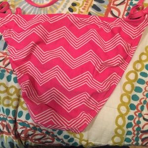 This is a fairly new swim suit. There is a stain on the inside of the top part but it is only a bleach stain from washing it and is not noticeable! Only worn once or twice in good condition! NO TRADES please! Thank you enjoy!