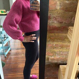 Beautiful wool crop jumper in bright pink. Turtleneck. Very soft and warm. I am a size 2. It would fit a size 0 as well. I have worn it once.