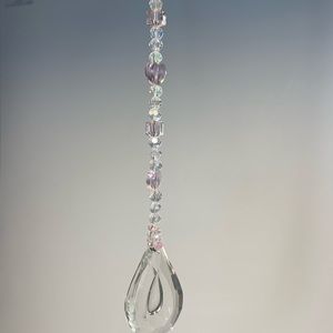 This is a one of a kind, handmade beaded suncatcher. This suncatcher has a variety of multicolored beads and a glass prism at the end. Reflects beautifully in the sunlight and will fill any space with colorful rainbows!