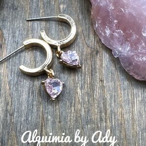 Pink cubic zirconia dangle gold dainty earrings hearts