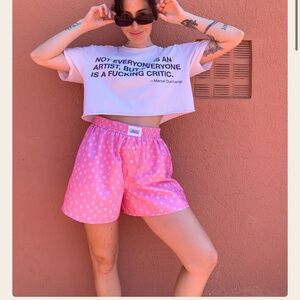 Handmade in Barcelona. “Benny Boxer Shorts.” Slow fashion, original pieces, made to order. Brand new never worn pink shorts with white flowers. One size, but fit like a medium/large. @millerthebrand