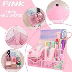 🧿MULTI-PURPOSE DESK ACCESSORIES: With 6 built-in independent compartments and 1 sliding drawer, our metal desk organizer can effectively organize all kinds of offices supplies and keep the desktop neat and orderly. The cute colors can also decorate your work or study desk and office supplies set create an inspiring environment for you