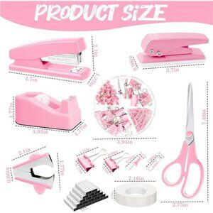 🧿WHAT WILL YOU GET: 17 pcs pink office desk accessories including 1 pink mesh desk organizer + 1 pen holder , 1 stapler, 1 staple remover, 1 single-hole punch, 1 tape dispenser, 1 scissors, 1 ruler, 1 dual tip highlighter, 1 2-in-1 stylus ballpoint pen, 1 mechanical pencil & refill (0.7mm), 1 gel pen, 1000 24/6 staples, 1 tape, 1 index sticker(with 200pcs sticky tabs), 1 clip set (includes 20 push pins, 7 large binders, 14 small binders, 24 paperclips)