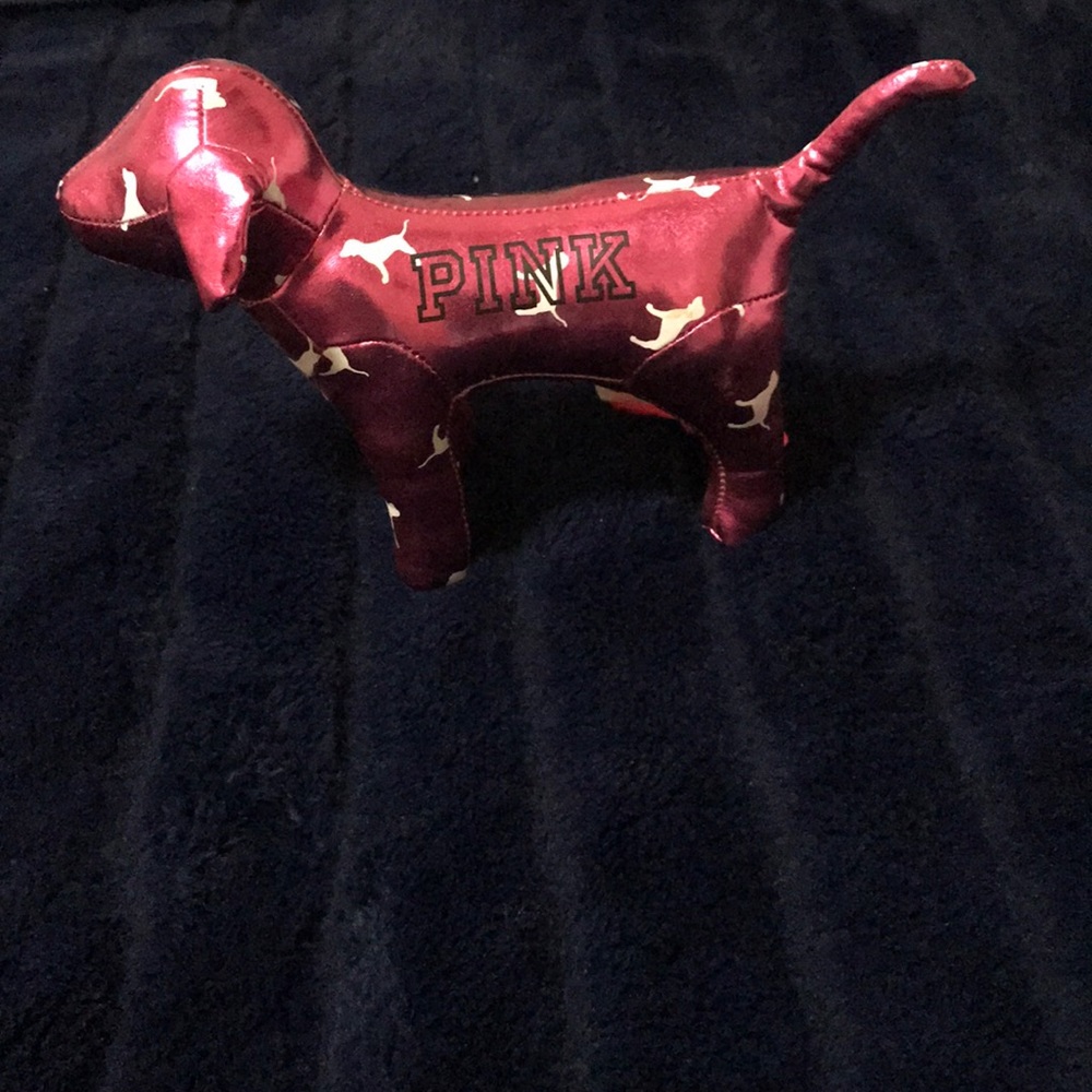 Limited addition Victoria’s Secret pink dog metallic pink material with white dogs on it
