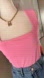 Barbie pink-knit double-layered tank top from the quiet-luxury clothing collection features a square neckline, sleeveless, fitted, and waist-length.