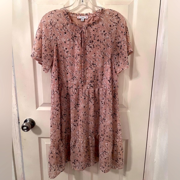 Nice pink dress with pattern. In good condition