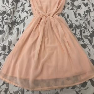 Pink dress from Defacto, purchased this gem while in Turkey few years ago. Worn few times, but in great condition. The dress is fitted on top and the bottom flows. The bottom of the dress has two layers, the first layer is a simple silk bottom and then to add some style they added a lace top over it. The shoulders of the dress has black beaded design and also some pearls on it to add an extra design to it. This dress is light weight and perfect for nice weather occastions.