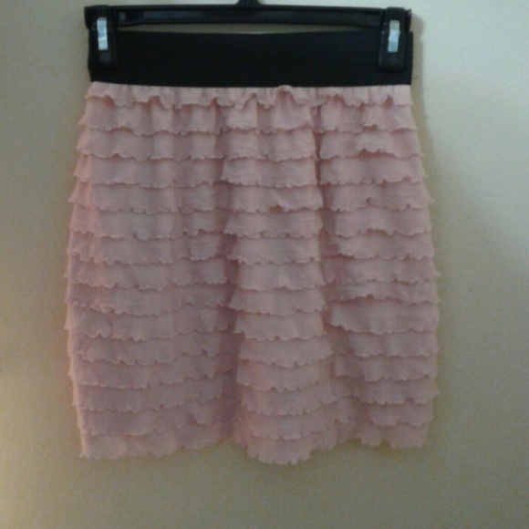 Pink fitted and ruffly! Never worn was bought at a thrift store (: No rips or stains. Does stretch! mid thigh length. (im very short ((4'11)) idk if it would be very long on a tall person).