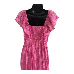 Pink floral printed leaf applique motif flutter sleeve v-neck fit and flare maternity billowy dress size large new