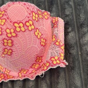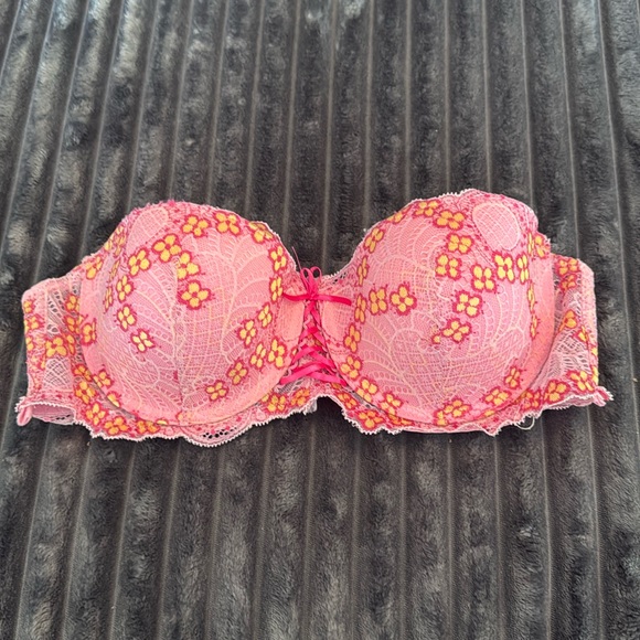 Pink floral padded push-up strapless bra size 36B