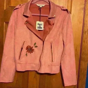 Davi and Dani NWT pink floral suede jacket. Can wear fully zipped up or half zip with snaps. All zippers function (B9)