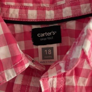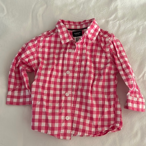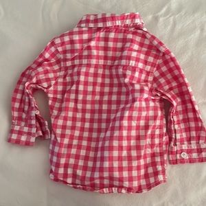 18 month pink gingham button down shirt. Pocket and double button detail on sleeve. Can be unisex
