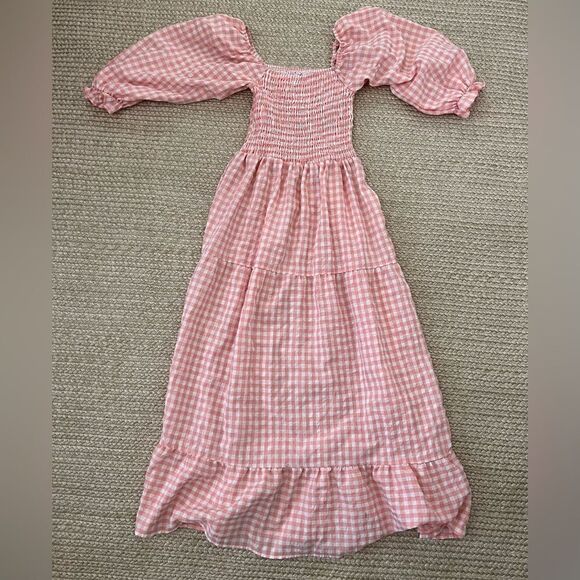 Pink gingham puff sleeve midi dress pink and white womens size small A11