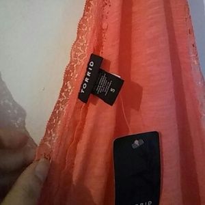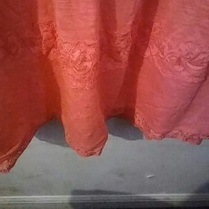 Pink girly tank top with lace on the edges and under the bust line and more a quarter of the way down. Light weight and can be worn for any occasion