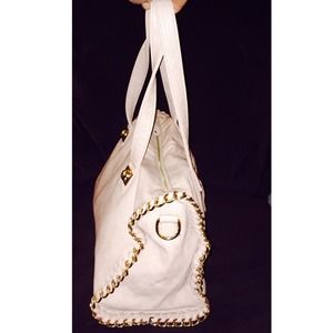 Pink gold chain embellished handbag
