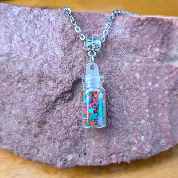 hand crafted by me. pixie dust necklace with stainless steel chain.