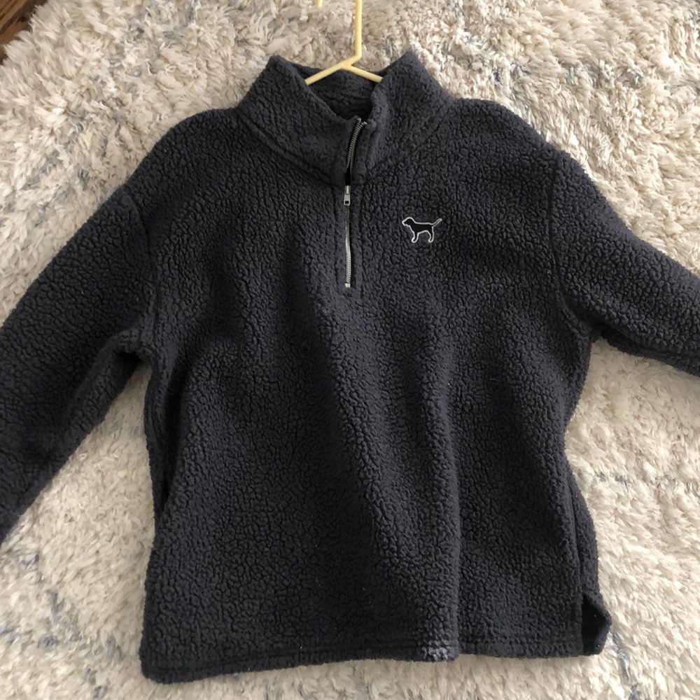 This half zip is 100% polyester and in a Pure Black Acid Washed color. If you love oversized sweatshirts this is perfect for you. It is a size large.