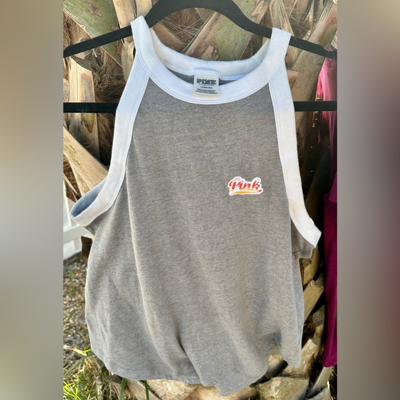 Super cute and sexy Victoria's Secret PINK Tank Top Women’s L - Gray/White PINK Halter
