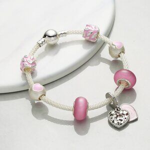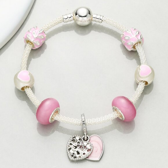 Pink Heart-Shaped Pendant Bracelet: A romantic and charming bracelet featuring a delicate heart-shaped pendant in a lovely pink hue.