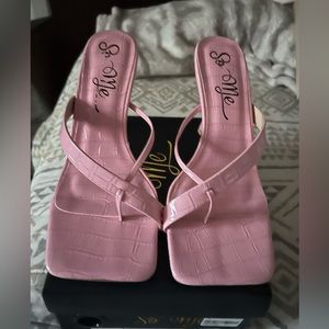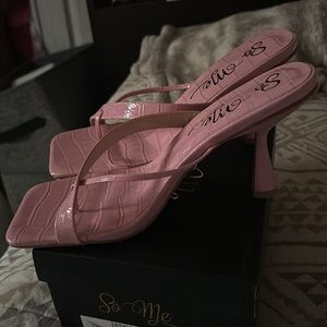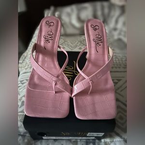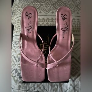 Brand new pink croc thong heels