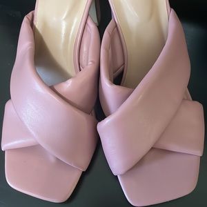 Pink leather / plush block heels size 7 1/2. Worn once.