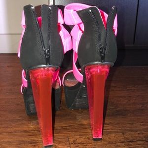 Never used! No tags but still has plastic sticks on bottom... 6inch heels! See through heel!