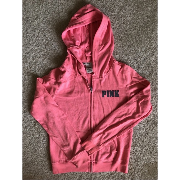 Pink hoodie from vs pink. It’s in good condition, size xs, and it has a logo on the back