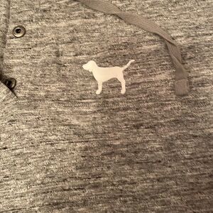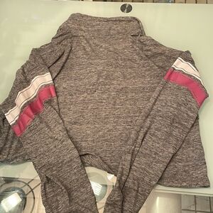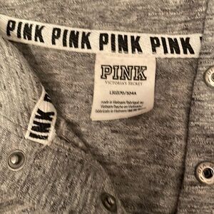 Pink hoodie draw string large logo on front grey white/pink stripes on sleeves