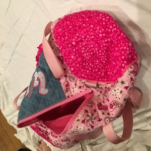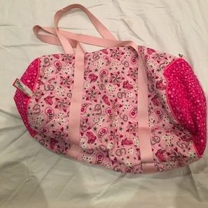 High quality pink horse shoe duffel bag pretty small but still fits a lot of stuff has two handles and a pink inside