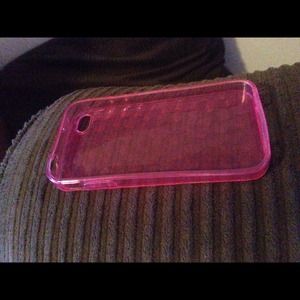 It's pink, soft and never been used, I bought it but it didn't fit my phone. It's flexible and bendy. Will take best offer.