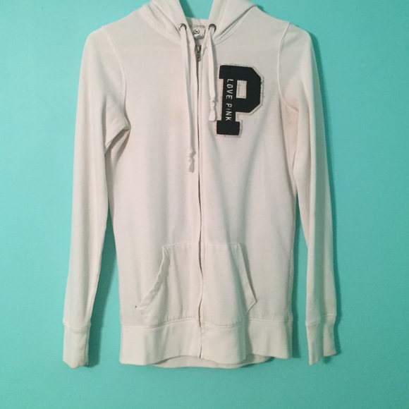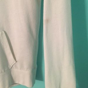 White jack with black lettering. 2 small holes by the pockets, and one tiny stain on left sleeve.