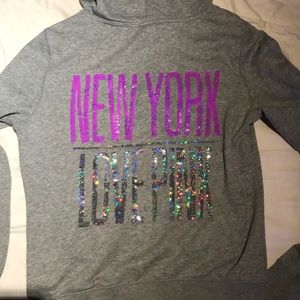 New York pink jacket. Has a very small stain on the front near the zipper.