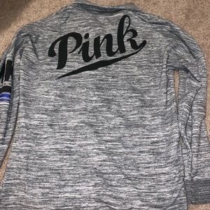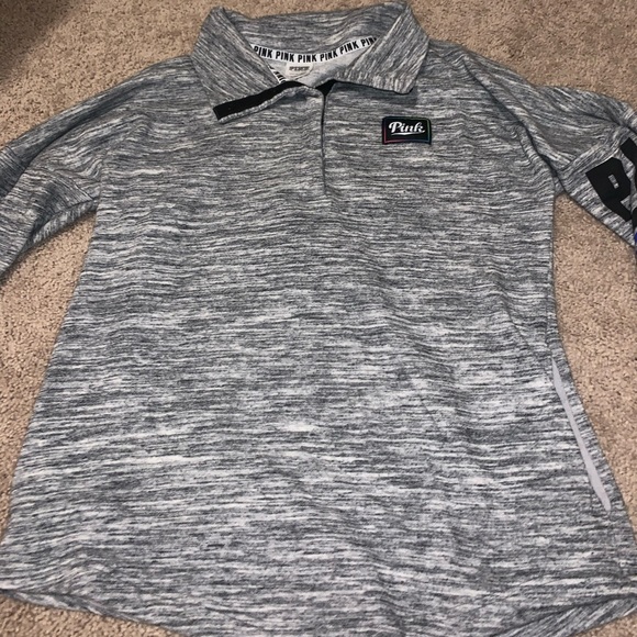 grey white print , half button up , fits like a L