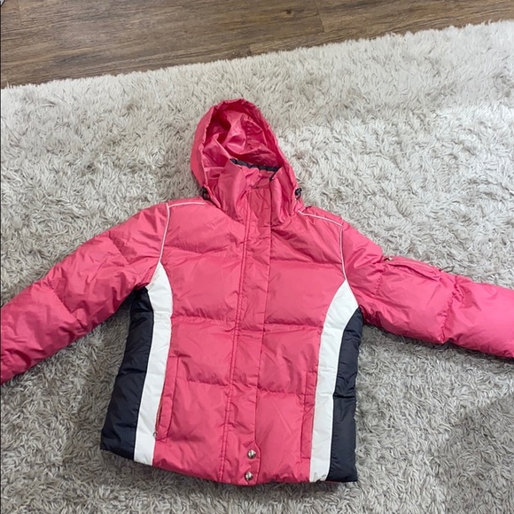 Very warm, pink jacket perfect for the snow. Please let me know if you would like additional pics or if you have any questions re quality!