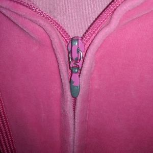Hot pink sway matteral it is a little worn on the zipper