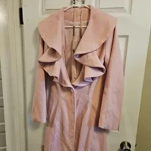 soft xl pink type of pea coat 1 flower button only wore twice has small snag inside very pretty
