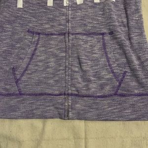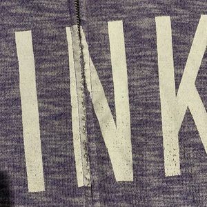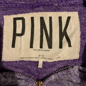 Size small Pink brand jacket. Very fitting and lightweight, perfect for around the house. In good condition, but there is some wear on the zipper line where over time tue zipper brushed the graphic part. (See photo)