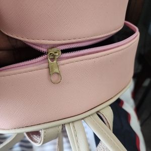 In good condition pink kitten backpack. The top zipper is broke *see picture for reference*. This backpack has two separate holding spaces. The main one on top and a smaller one in front.