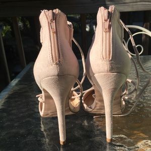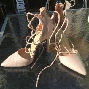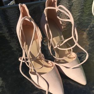 These heels will make you feel on top of the world! Lace them up and make your outfit extra glamourous with this soft ballet pink shoe. Originally bought from Forever 21. Worn one time. Excellent condition. No signs of "wear and tear". This shoe is next to new!