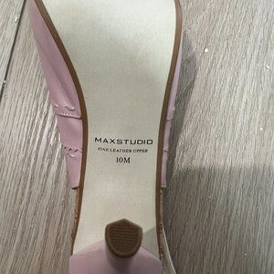 Pink leather upper Maxstudio contemporary slingback heel with cutouts. Shoes have never been worn but the interior is deteriorating due to being stored for so long. Size 10M. This contemporary pump can add some interest to your outfit.