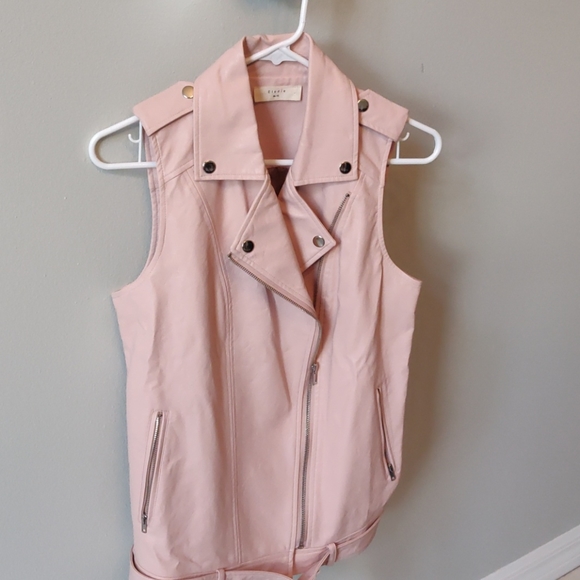 Pink leather vest perfect for not too cold days, can be worn open or with or without belt. Only worn once.
