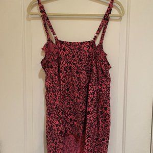 Pink leopard print ruffled tank top