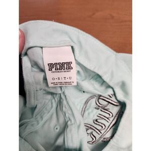 Pink light blue hat with PINK embroidered in black. Adjustable