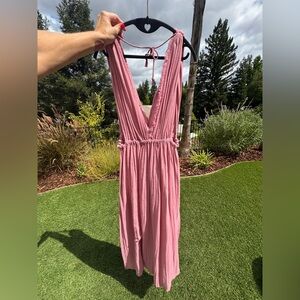 Elegant pink sleeveless dress featuring a colorful embroidered waist. Perfect for any occasion. It’s very stretchy so it can fit all sizes. I bought this at the farmers market for $150 and never wore it. It’s imported linen.