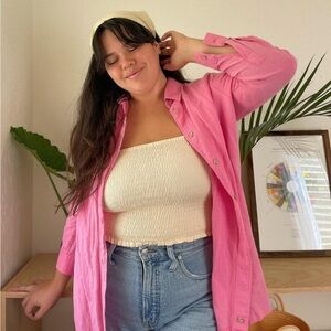 Pink linen button down
