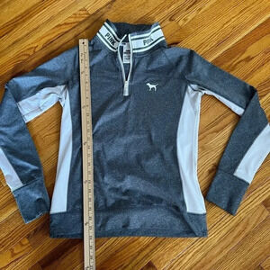 Pink long sleeve top, size medium. Color grey and white, with a quarter zip neck. In excellent used condition, great for workouts.