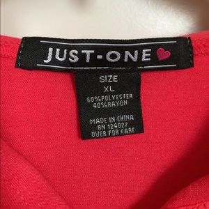 I bought this about a year ago, and only wore it once. I didn't like how it looked on me (the color), and I never wear it. Size XL, I got it at Bealls, I think in the juniors section
